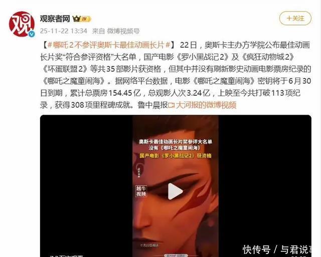 要知道当初《哪吒二》上映时热度接连不断,总票房的全球排名也是不断攀升,最终成为全球动画票房榜榜首。 是非常有资格角逐奥斯卡奖项的。 带着许多疑惑,有记者向《哪吒》的出品方确认此事。 这才发现,事情的真相就是他们根本没有将影片报名,可以说是主动放弃了奥斯卡奖。